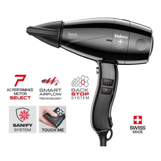 فن‌آوری Smart Airflow یکپارچه جریان هوای قدرتمند و در عین حال آرام را ارائه می‌کند (فقط ۶۵ دسی‌بل (A)). سیستم SANIFY والرا محیط ایمن تر و سالم تری را در سالن تضمین می کند. سیستم Backstop از گیرکردن مو در فن جلوگیری می کند و از موتور در برابر خرابی محافظت می کند. 369 Light Plus سشواری است که آرایشگران به دنبال آن هستند: مطمئن و حرفه ای، سبک وزن و ارگونومیک.