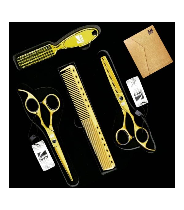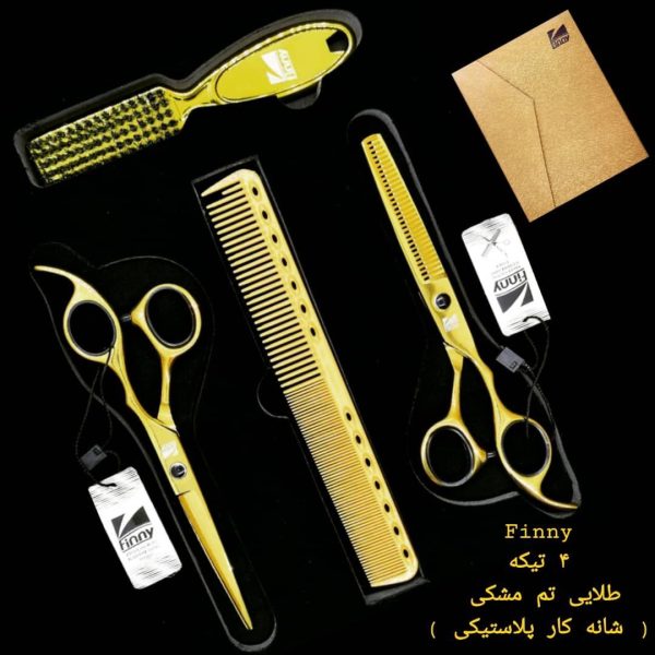 - ست قیچی آرایشگری فینی 6اینچ طلایی (کات و کوتاهی _ پیتاژ )