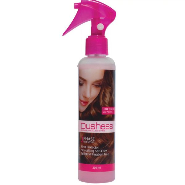 سرم مو دو فاز دوشس مدل پروتئین ابریشم فاقد پارابن بوده و روغن کنجد درون آن از موها در برابر حرارت ناشی از سشوار و اتوی مو محافظت می کند.