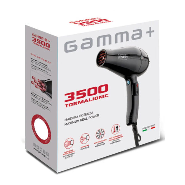 سشوار گاماپلاس مدل 3500 Gamma+ دارای موتور AC است همواره با دارا بودن 2500 وات قدرت حقیقی ساخته شده در بهترین کارخانه ایتالیا با بروزترین تکنولوژی روز اروپا میباشد.
