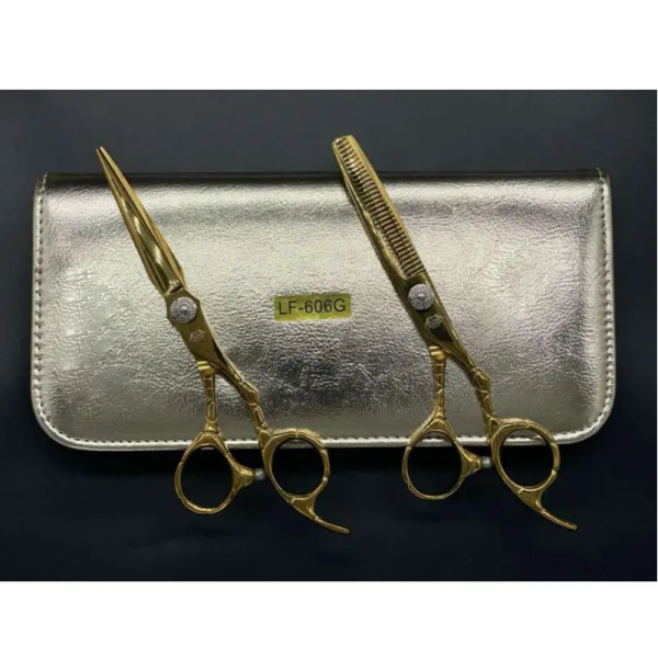 ست قیچی آرایشگری جگوار مدل LF-606G از جنس استیل ضد زنگ است که سایز 6 اینج دارد و یکی پر طرفدار ترین ست ها از نظر اندازه و کیفیت در بین آرایشگران حرفه ای و مبتدی است.