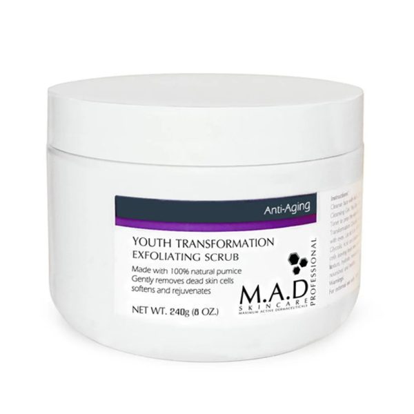 اسکراب ام ای دی با ترکیبات کاملا گیاهی با هدف لایه برداری و ایجاد پوستی جوان و شاداب طراحی شده است.