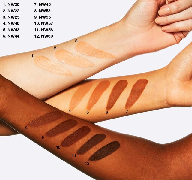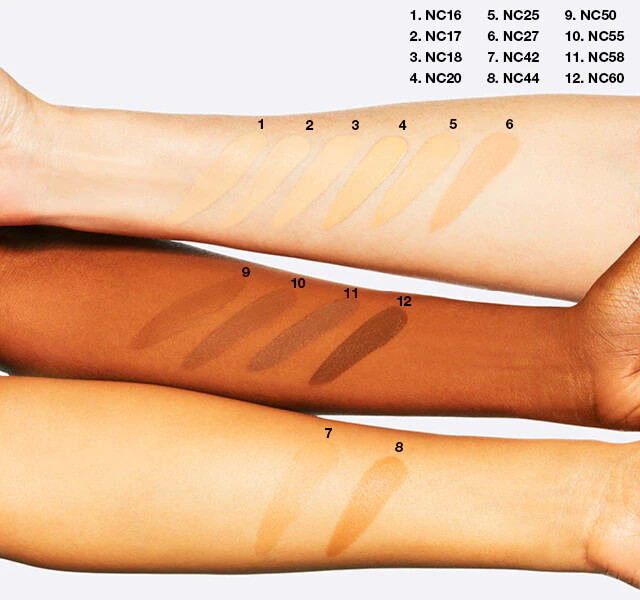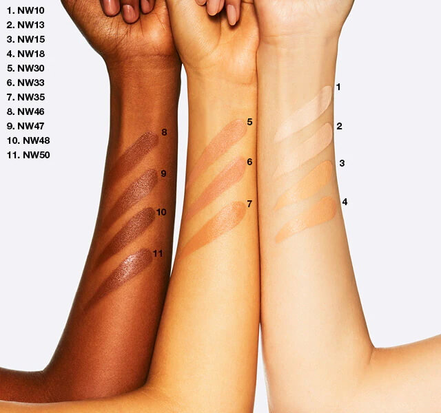 این کرمپودر در تناژ رنگی بسیار متنوعی ارائه میشود که به شما امکان انتخاب بهترین رنگ متناسب با رنگ پوستتان را میدهد. کرم پودرهای مک با دو کد NW و NC عرضه میشوند. منظور از NW رنگهای طبیعی گرم با بیس صورتی است. منظور از NC رنگهای طبیعی سردتر با بیس رنگی زرد است. همچنین دارای SPF 15 است که تا حد قابل قبولی از پوست شما در برابر اشعههای مضر خورشید محافظت میکند. کرم پودر مک به خاطر فرمولاسیون خاص خود حالت ماسیده و یا کیکی روی پوست ایجاد نمیکند. بافت نسبتا سبک آن باعث بسته شدن منافذ و ایجاد آکنه نمیشود.