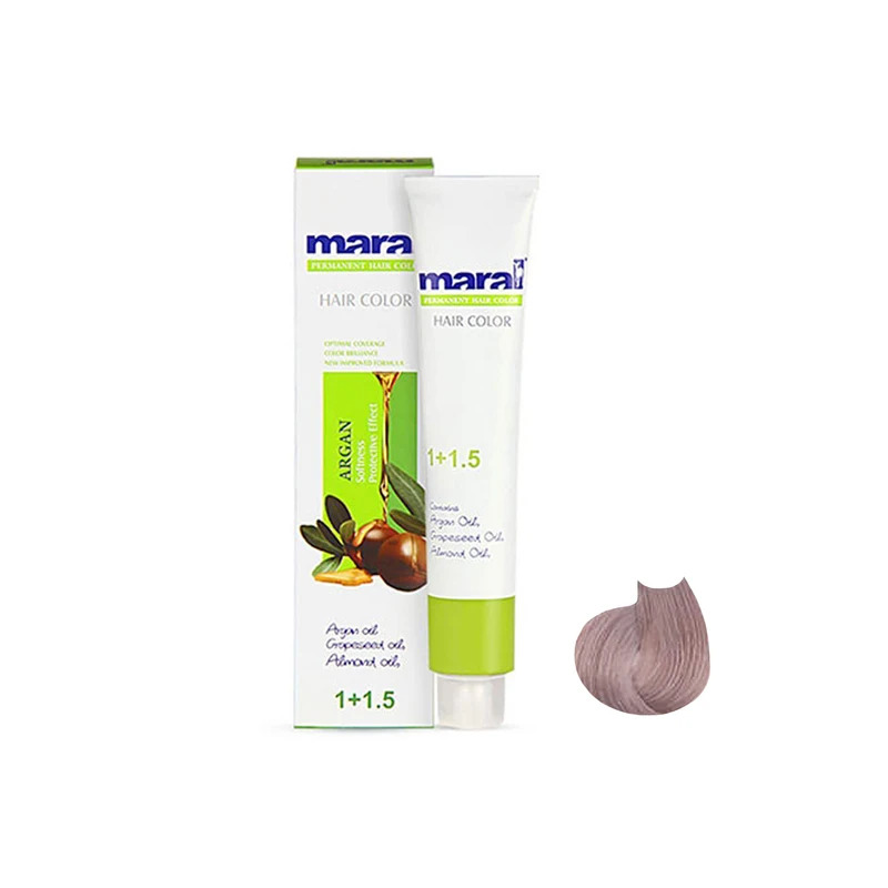 رنگ مو بلوند دودی بنفش روشن مارال شماره 8.19 با فرمولاسیون پیشرفته به شما این امکان را میدهد که بدون آسیب به ساختار مو، ظاهری شاداب و جوان داشته باشید.