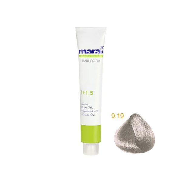 رنگ مو بلوند دودی بنفش خیلی روشن مارال شماره 9.19 با فرمولاسیون پیشرفته به شما این امکان را میدهد که بدون آسیب به ساختار مو، ظاهری شاداب و جوان داشته باشید.