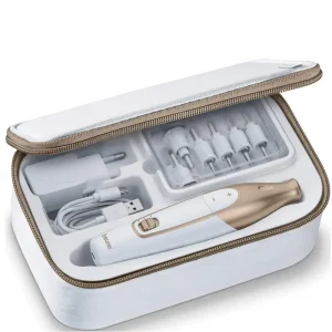 کلید روشن و خاموش، برس تمیز کننده و کلاه محافظ از دیگر ویژگی های پدیکور بیورر MP-55 است.