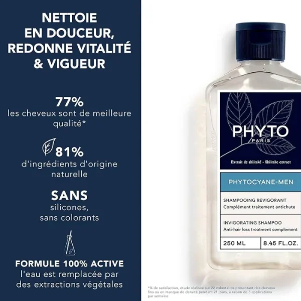 شامپو ضد ریزش فیتو PHYTOCYANE یک شامپو مخصوص آقایان است که به بازگرداندن تراکم و درخشش به موها کمک می کند. این شامپو کمک می کند که پوست سر تقویت شده و موهای شما سالم تر، قوی تر و ضخیم تر از همیشه به نظر برسند. شامپو فیتوسیان می تواند ریزش مو را خصوصا در خانم های باردار درمان کند.این محصول با ترکیبات گیاهی و موثر خود، به شما در داشتن موهایی سالم، قوی و پرپشت کمک می کند.