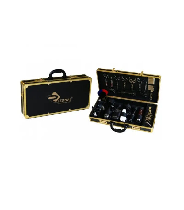 کیف ابزار لوازم آرایشگری و اصلاح سامسونتی رزونال Rezonal tool bag از برند معتبر رزونال است که در زمینه تجهیزات آرایشی و پیرایشی در سطح جهانی فعالیت دارد.کیف سامسونتی رزونال به رنگ مشکی و طلایی است و از کیفیت بالایی برخوردار است و گزینه ای مناسب برای آرایشگران حرفه ای و افرادی است که ابزار پیرایشی زیادی دارند و به وسیله ی این کیف می توانند ابزار خود را سازماندهی کنند و بدون آسیب به آنها وسایل خود را جابجا کنند.