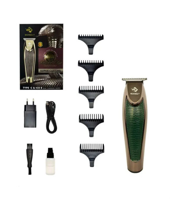 ماشین اصلاح سر و صورت رزونال اسنیک کلیپ 9305 Rezonal snake clip cord /cordless خوش دست با طراحی ارگونومیک، مناسب برای مصارف حرفه ای و شخصی است. ماشین اصلاح Rezonal snake clip دارای تیغه استیل ضد زنگ است و از فناوری برش مستقیم بصورت استفاده با سیم و بیسیم بهره می برد و 5 شانه اتصال به تیغه به همراه دارد که با آنها می توانید در اندازه دلخواه موها را کوتاه و اصلاح نمایید.این ماشین اصلاح از رزونال همانطور که از نامش پیداست طراحی بسیار زیبا از پوست مار دارد و دارای دو رنگ سبز و مشکی می باشد.