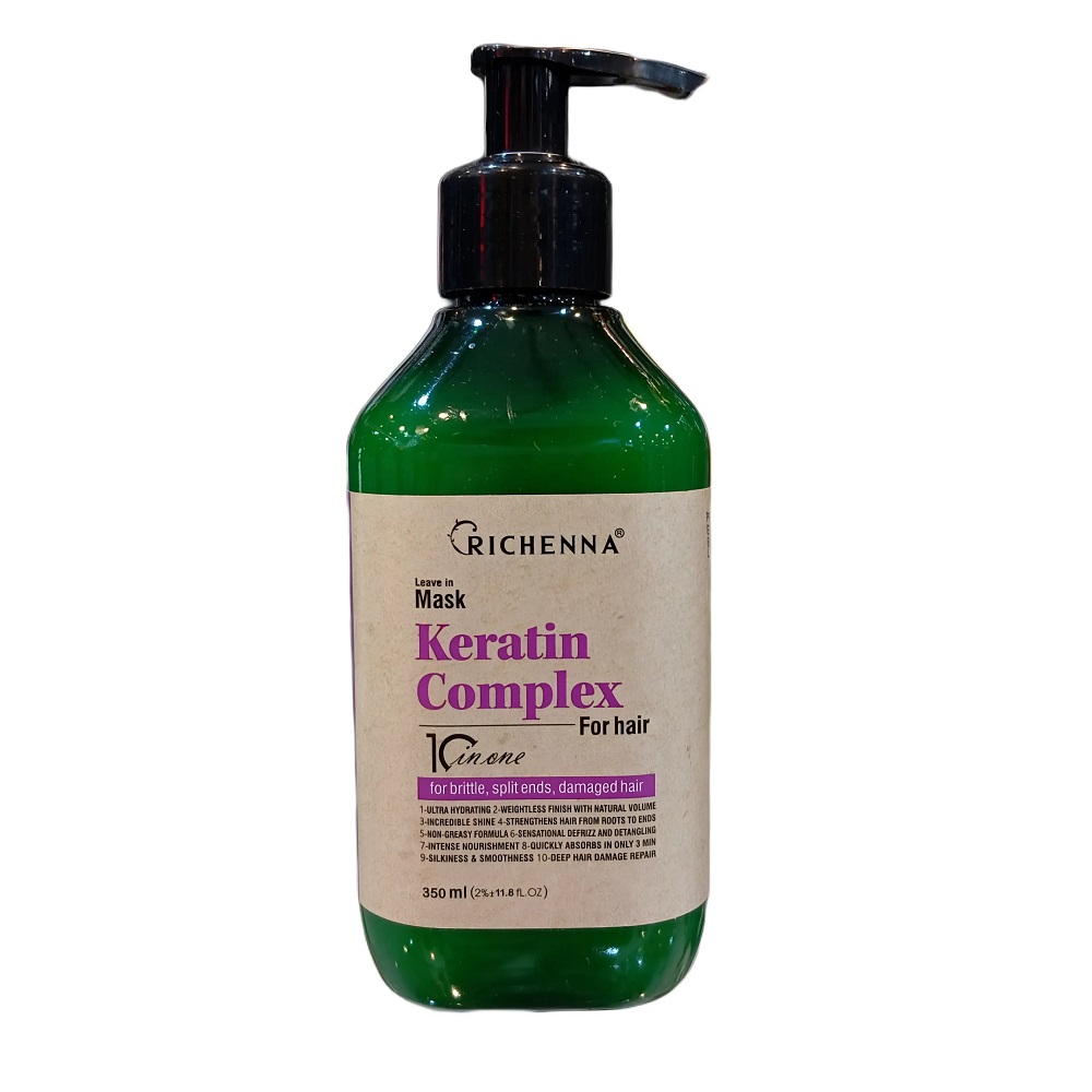 این ماسک به صورت leave-in طراحی شده و بدون ایجاد سنگینی، موها را عمیقاً تغذیه کرده، لطافت و درخشندگی بینظیری به آنها میبخشد. ماسک مو بدون سولفات بیرون حمام ریچنا مدل کراتین 350 میلی لیتر، یک درمان کامل برای موهای آسیبدیده و خشک است که با فرمولاسیون ویژه کراتین، در عمق مو نفوذ کرده و موجب بازسازی و احیای کامل مو میشود.