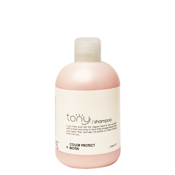 شامپو تونی مخصوص موهای رنگ شده محصولی از برند ایرانی تونی است. این محصول، ترمیم کننده، تغذیه کننده و تثبیت کننده رنگ مو بوده که به واسطه بیوتین، ویتامین و پروتئین های غنی، موها را تقویت و درخشان نموده و به لطف دارا بودن عصاره انار از کدری آن جلوگیری به عمل می آورد. این شامپو، فاقد پارابن، سولفات و سدیم کلراید است.