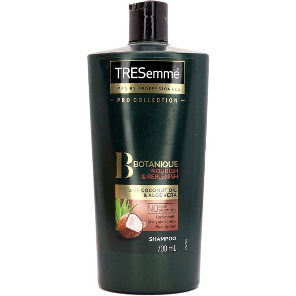 شامپو بوتانیک نارگیل TRESemme Botanique برای انواع مو مناسب است که در حجم 400 میل عرضه میشود. حاوی روغن نارگیل و آلوئه ورا است که مو و پوست سر را مرطوب و تغذیه می کند و باعث ریکاوری و ترمیم مو میشود. شیر نارگیل : منبعی غنی از اسید لوریک و اسیدهای چرب و پروتئین و همچنین سرشار از ویتامین های گروه B و E و C است.